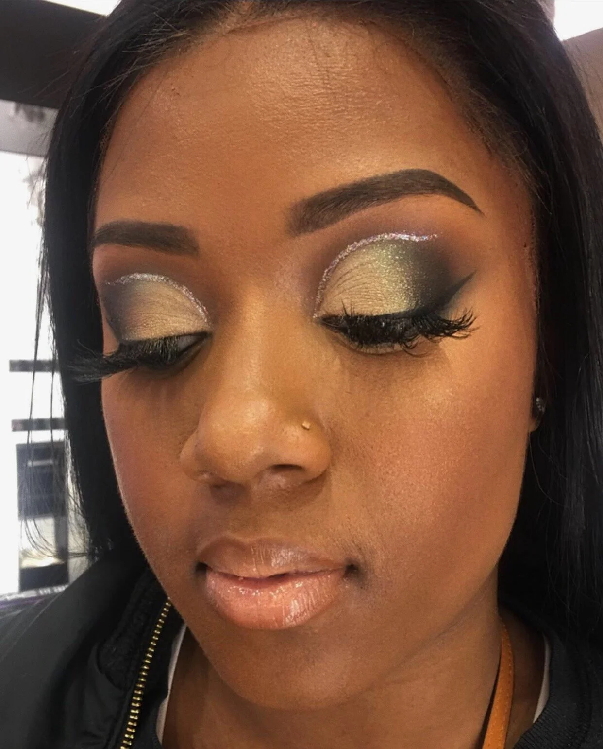 Sooo extra, rhinestones with black, hot pink, and iridescent shadows - Megan